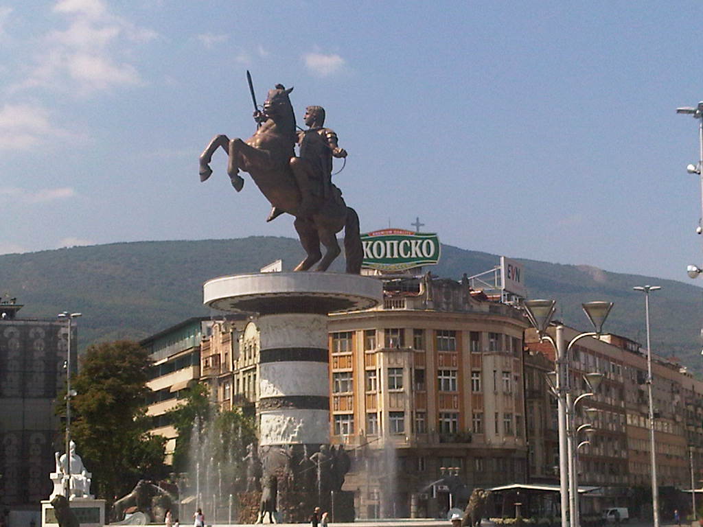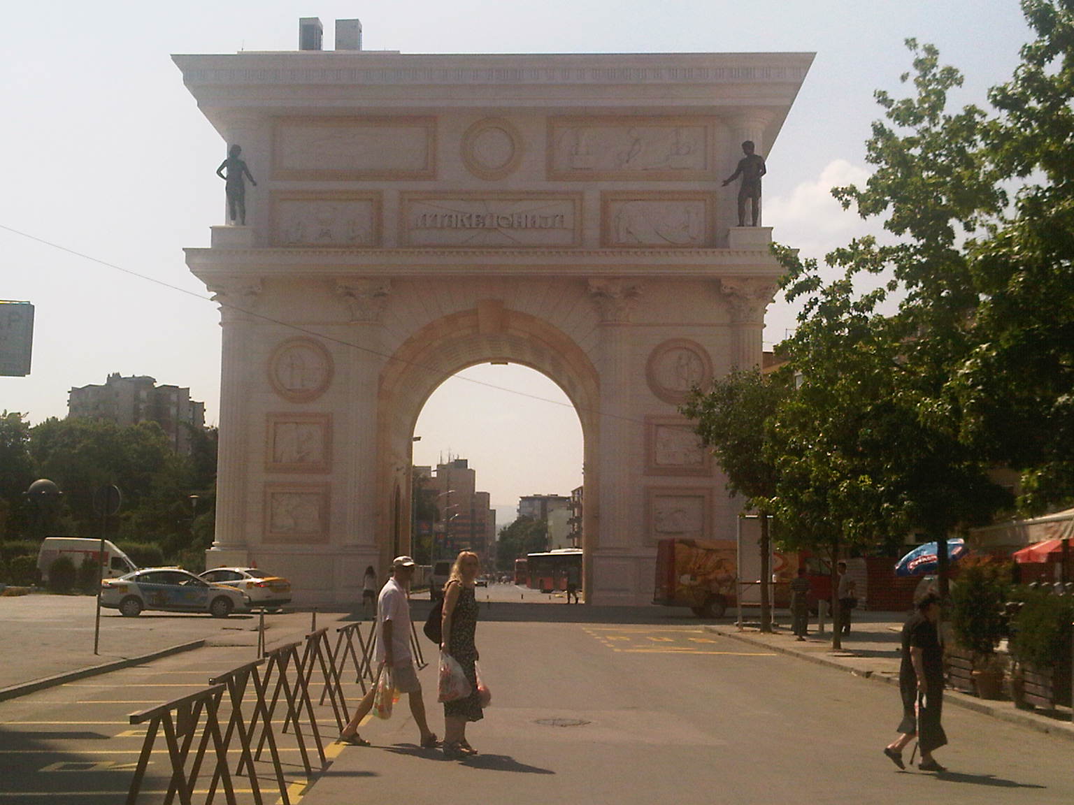 I hadn’t seen Skopje since its still incomplete facelift, which installed a grand pedestrian plaza along the Vardar River, where ruined asphalt and weeds used to preside. It’s a dramatic improvement, marred by the grotesquely outsized equestrian statue of we guess Alexander the Great (as well as several other grand luminaries), not to mention a triumphal arch.